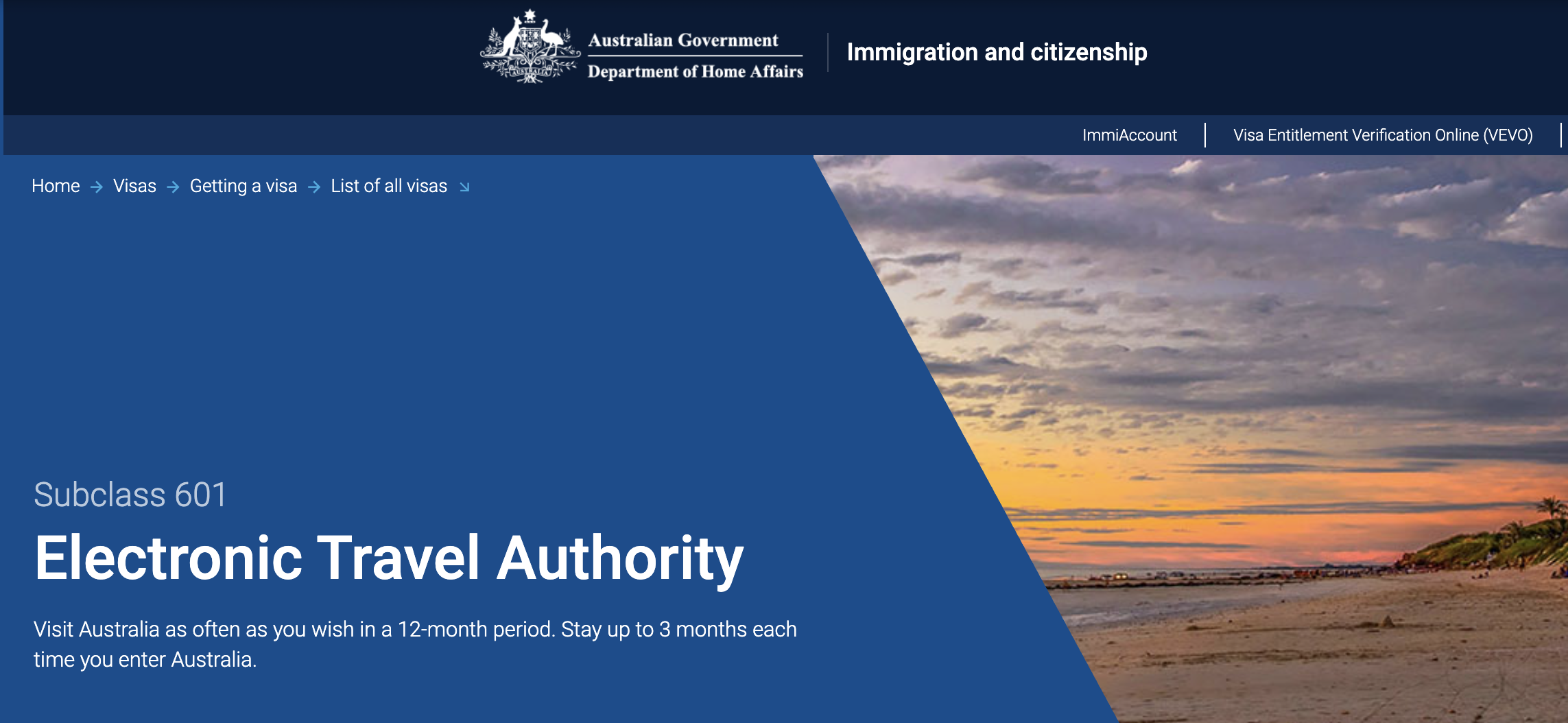 請申請Electronic Travel Authority(ETA) Subclass 601